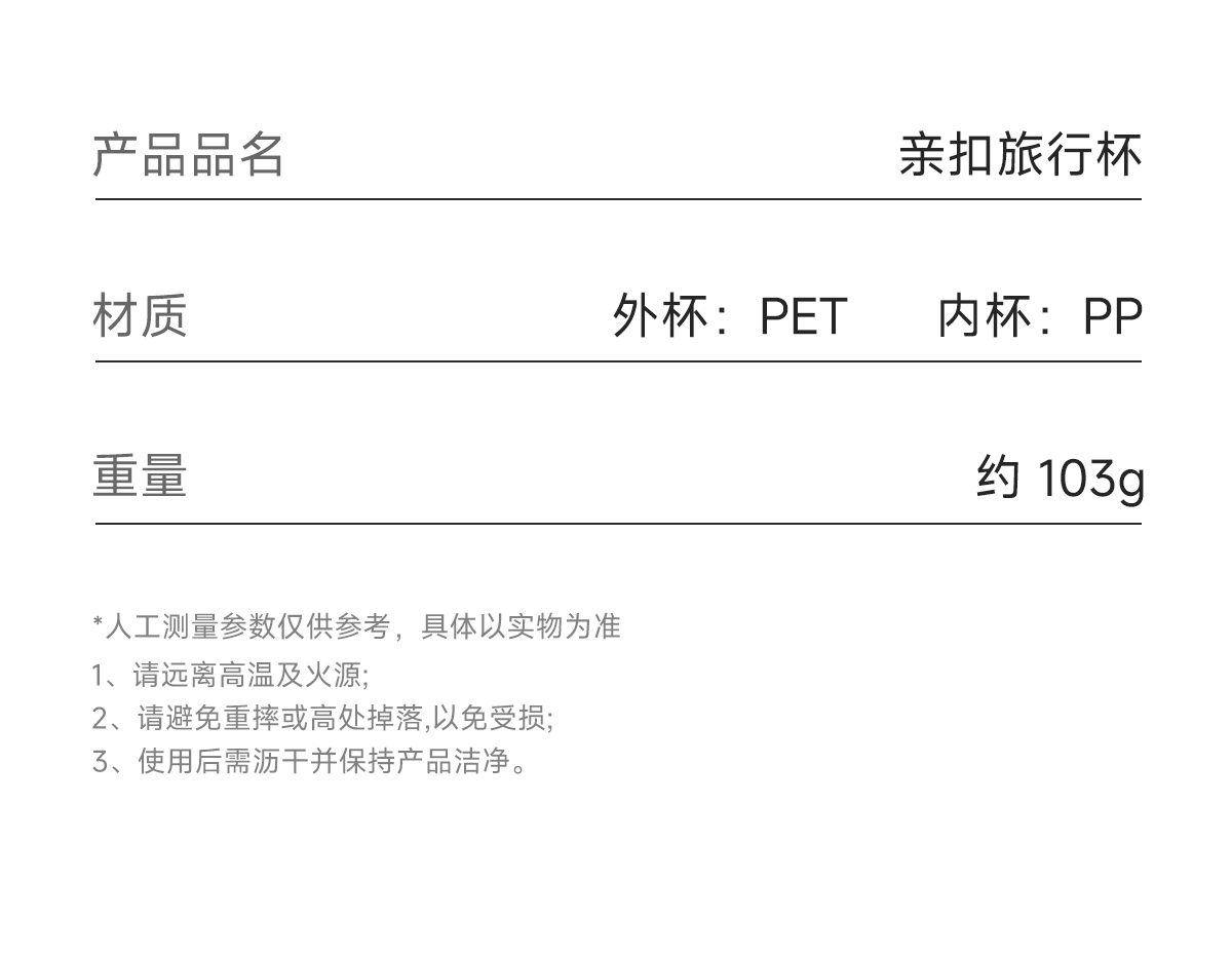 | 商品产地: | 中国 | 商品材质: | 外杯:PET、内杯:PP | |