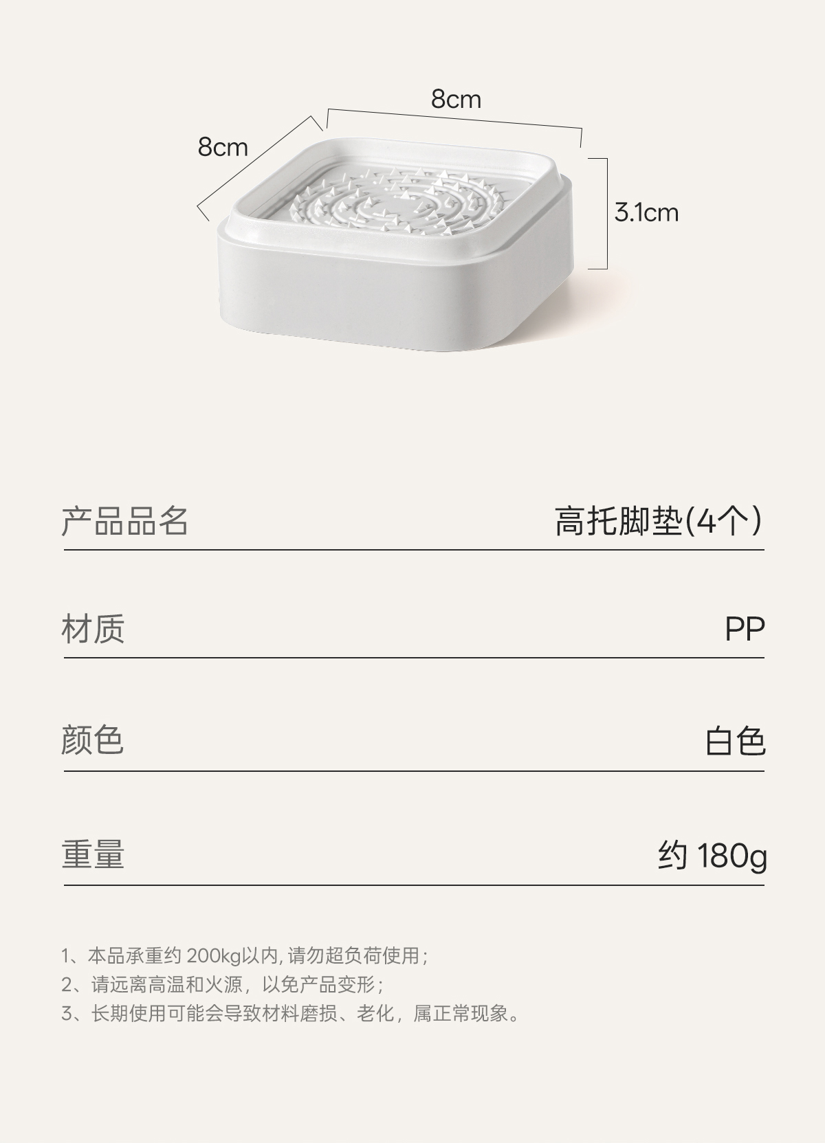 | 单个尺寸: | 8*8*3.1 | 单个重量: | 182 | |